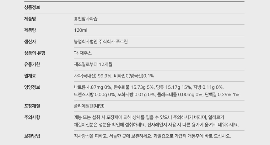 성원컴퍼니 홍천농산물 강원도 홍천 사과즙 HACCP인증 해썹인증 학교급식제품 학교급식추천 사과즙 건강즙 과일즙